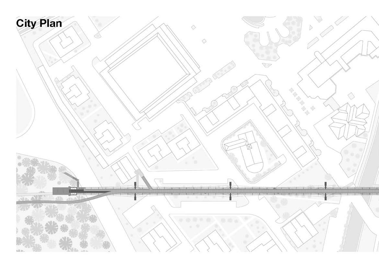 Plecând de la conformitatea structurală a funicularului s-au identificat două posibilități de al străbate atât pietonal , cât și cu bicicleta. Grinda cheson este elementul structural principal de care aceste circulații nou propuse se vor conecta. Cele 6 pile care susțin grinda cheson, împart funicularul în 7 tronsoane, ce devin astfel 7 secvențe în traseul propus prin proiect.